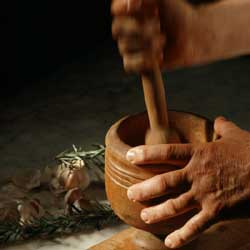 e mantenerli in caldo. Prendere il frullatore e mettere cipolla, agli, rosmarino,