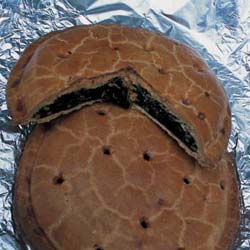 Viene impastata la farina con il vino, fatto intiepidire insieme al burro, all’olio ed allo zucchero; viene tirata una sfoglia di circa 3 mm dalla quale si ritaglia un disco che viene disposto su una teglia da forno. Su tale disco viene disposto il ripieno e sopra un altro disco di pasta. Con le dita si chiudono i bordi della torta, con la forchetta si fanno dei fori sulla parte superiore che viene unta con un po’ di olio. Il tutto viene messo in forno per non più di 20 minuti in modo che la pasta rimanga molle. Una volta fredda, la torta viene cosparsa di zucchero a velo.Per il ripieno: il miele viene fatto bollire per qualche minuto con il vino bianco, in modo che rigonfi; a caldo, su fuoco moderatissimo, si aggiungono al miele il pane secco, la noce moscata, il pepe e la cannella, girando accuratamente il tutto. Vengono poi aggiunte le mandorle, le noci e le nocciole ben triturate. Una volta tolto dal fuoco il recipiente, si uniscono all’impasto il rosolio, il cedro, l’uvetta e i pinoli interi. Questo impasto va fatto riposare un giorno in ambiente tiepido, quindi deve essere preparato il giorno prima per poter essere disposto sul disco di pasta come ripieno.