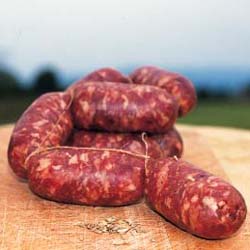 Il sanbudello è una salsiccia piccola e rotonda, lunga al massimo