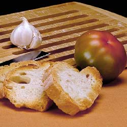Put in fresh water some slices of stale home-made bread, when it is reconstituted, drain and crumble it in a salad bowl. Add some small slices of red onion, some pieces of two salad tomatoes, slices of a cucumber, a rib of celery and various basil leaves. Dress with excellent olive oil, vinegar, salt and pepper.