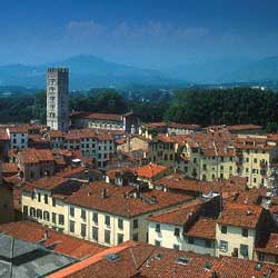 Probably founded by the people of Liguria, who made it their southern outpost, Lucca would have subsequently suffered the influence – if not the dominance. – of the Etruscans, and then become a “Municipium Romano” (89 B.C.). Certainly, in its early development it benefited from its position of important road junction at the crossroad between the Cassia, the Clodia and the Aemilia Scauria. The importance of the city grew however in the Longobardo era, when it became the Seat of a Duchy and the capital of the Tuscia, a role which it maintained even with the Carolingian reorganisation of the Empire and the creation of the Marquisate. In 1118 it was made a free municipality, from 1186, with the official recognition of its autonomy by the Emperor Enrico VI, a new phase of ascent began for the city which lasted for 1½ centuries, marked by the usual conflicts between its neighbouring municipalities, among which, and above all, Pisa showed as the traditional rival. Despite, several hold ups caused by the diplomatic warring mishaps – like that of 1234 when under restraint they were forced into a non conditional peace with Pisa and Firenze - the economic growth ran parallel with the strengthening of the States foundations. In the 1308 citizen’s statute we thus find the supremacy by the peoples “parties” sanctioned (Art in the first instance) and a precise delineation administrative structure of the territory. Even Lucca could not escape from the internal disputes which characterised the life of the Toscani municipalities; divided by the Bianchi captained by the Antelminelli, and the Neri with the Obizzi leadership, and in 1300 the city was in the power of the latter.