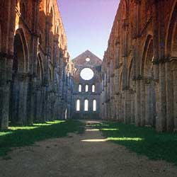After becoming a Cistercian monk, the former knight Galgano Guidotti had a chapel built on Monte Siepi in about 1180, and he later died there a hermit. The Cistercian monks later managed to build an oratory and a building in honour of Galgano (who had in the meantime been sanctified), thus giving birth to the Monastero di San Galgano, a splendid building and one of the finest examples of Italian Gothic-Cistercian architecture. The power of the monastery quickly grew, and it soon absorbed the surrounding Benedictine abbeys.