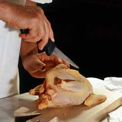 Turn the breasts and remove the pan dregs carefully from the meat, cook