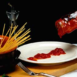 Cotti gli spaghetti, in acqua piuttosto salata, saltarli con il sughetto