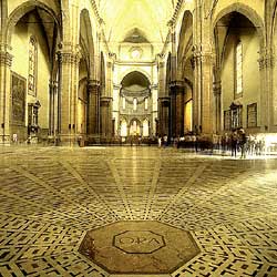 The queue moves quickly and before you realize it you are squeezing through a narrow door manned by a priest who is there to ensure the orderly and dignified entry into this holy place. You walk into a huge open space with floor to ceiling columns down each side about a quarter of the way in. This left a large area leading to the alter under the coupola. You walk in slowly and feel all those around you disappear into the shadows. It is not bright with windows letting in light but rather gloomy. The floor is heaved in places and the mosaic floor design has been warped by 700 years of existence. You see the 1966 flood line on the wall.It is easily 5 feet up from the floor. You come across a small tour group and the leader is giving some details about the construction and subsequent history of the church. Some people are listening, those standing right in front. Those further to the back are looking around in an trance like gaze as if unable to totally comprehend what it is they are feeling. They somehow know intuitively that no list of facts is going to explain this place and the best they can hope for is remembering this sense of awe they are feeling right now. The guide is talking too much, you think. She is wrongly the center of attention and you understand why no one is paying attention. You move on.