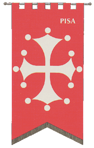 These successes in the long run generated an inevitable conflict with Genova, another important protagonist in the Italian maritime expansion, which in the end would have produced disastrous results. With regard to internal events the decade across the XI and XII centuries saw the first gradual trace of that which would become the municipality. If the first consul attestation was dated around 1084, it was in fact only after the middle of the successive century, at the end of a period of cohabitation between Bishop, Viscount, and consular aristocracy cemented by communal economic interests, that the consuls (and the senate which was side by side with them) assumed all the major political, fiscal and jurisdictional attributions. Parallel to this evolutional institution was the outline of a decisive penetration of the strength of the Ecclesiastic and Lay townsfolk in the county territory – both in those near the town and those further away, like Maremma south of the river Cecina – and towards the end of the XI century the countryside appeared as a fairly well organised complex subordinate to the city. This process was sanctioned and in some way guaranteed by the Emperor: in 1162 Federico Barbarossa, in exchange for the support of Pisa for his Italian politics, recognised their jurisdiction over all the county and the Tirreno coast from Portovenere to Civitavecchia, while three years later assured the feudalisation of Sardegna which damaged Genova. This was reason enough for restarting the conflict with the Ligure republic, complicated by the involvement of other Toscana cities: Firenze intervened beside Pisa, Lucca and Siena allied themselves with Genova. With the coronation of Federico II, however, the political formation of Toscana, under the pretext of the adhesion or the opposition by the Imperial party, but in reality with moves of precise interest and for motives of prestige it was recomposed on a different basis: on one side the “Guelfi”, with at their head the Fiorentini who had broken their alliance with Pisa and taken up with Lucca, on the other the "Ghibellini" supported by Pisa and Siena. The decade which followed was for Pisa, surrounded by many enemies, more shadow than light. Defeated for the first time in 1222 at Casteldelbosco, lost in 1254 the Lunigiana, the Versilia, the Valdarno, the Vald’Era and the Val di Serchio were reconquered only after the thrashing of the Fiorentini at Montaperti in 1260, which opened a brief period of peace, followed however immediately after by the resumption of hostilities and the new defeat of Pisa.