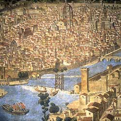 Twenty-five years ago I visited Florence for the first time. It was the city of my long held dreams and a destination that tugged at me relentlessly. I'm not sure when my love affair with the city started but I do remember when it came into my consciousness, in November of 1966, the year of the great flood. It was the only time that I remember a film being shown in church after mass. It was a newsreel of the after affects of a devastating flood that nearly destroyed Florence. I saw images of grand cathedrals awash with mud, damaged frescos, ruined paintings, old women crying, young men and women shovelling mud from the streets. Intermixed with the devastation were scenes of Florence before the calamity. This was the creative home of Da Vinci and Michaelangelo, the birthplace of the Renaissance and the city reflected that glorious past in its physical beauty.